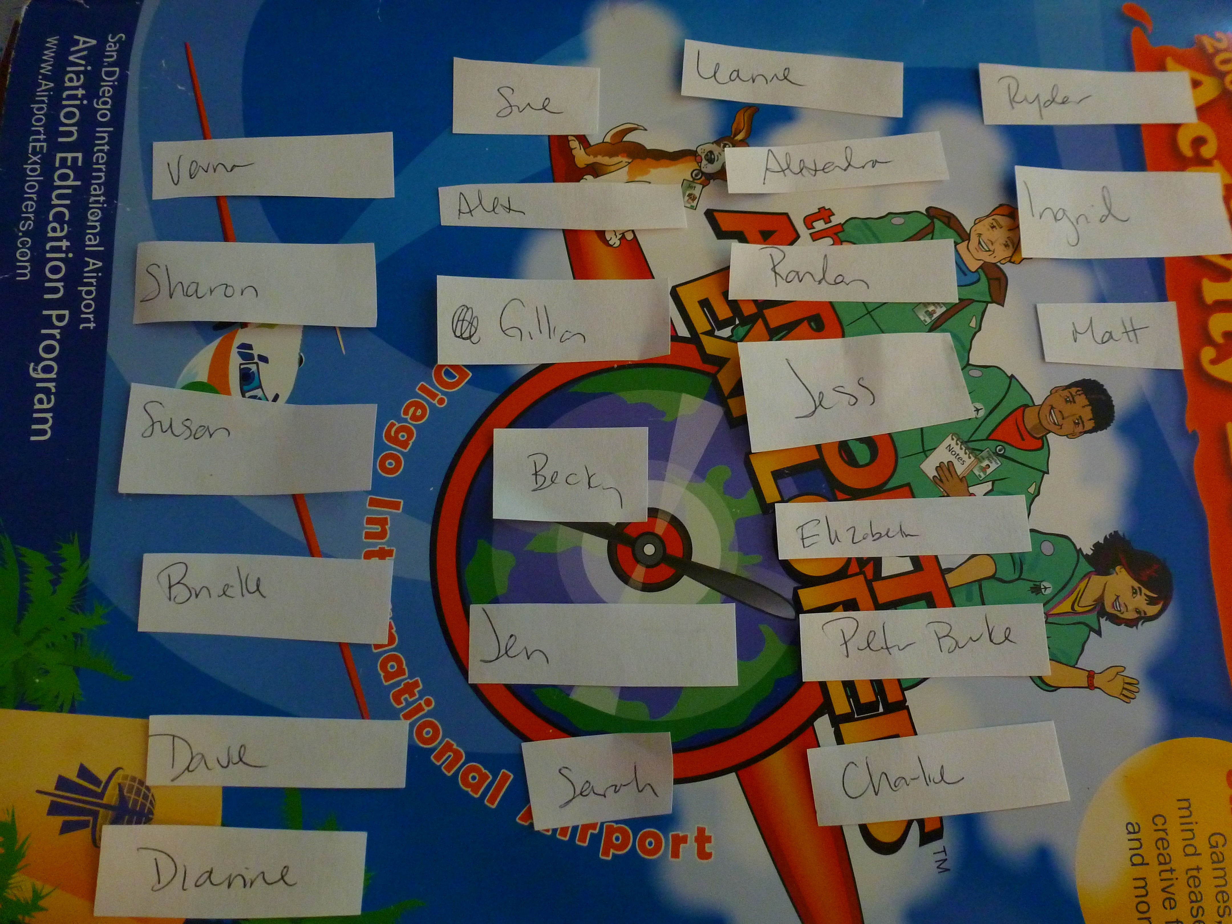 There you all are, on top of the airport activity book we got in San Diego–TSA’s attempt to keep children happy and parents sane during travel.