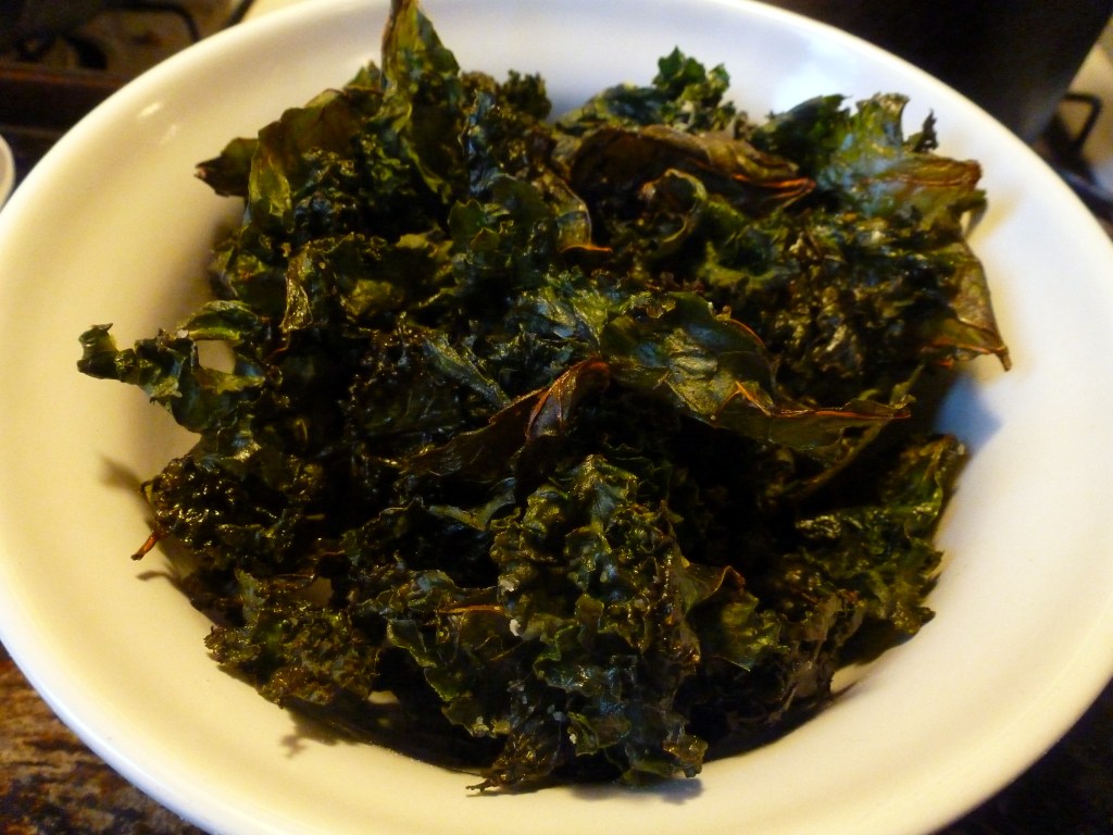 The first thing I need to do is refute what you might have heard: no, these do not taste “exactly like potato chips!” Please. How could they? Kale is bitter and leafy and dark and chewy and potatoes are potatoes. For the love of Holy White Spargel, people, it’s like when those Atkins Diet folks tried to convince everyone that mashed cauliflower tasted “just like mashed potatoes.” No, it did not. It tasted like mashed cauliflower, which has its very own charms and delights! I’m all for simile-making, as you know, but why can’t we just learn to appreciate foods on their own merits? That is what I want you to do with this roasted kale, which, while not a potato chip, IS a delightfully crunchy, salty (if you like), snacky, wholly addictive thing to put in your mouth. And if you have a surfeit of green in your garden or your CSA box, this is a great way to make good use of it quickly.
