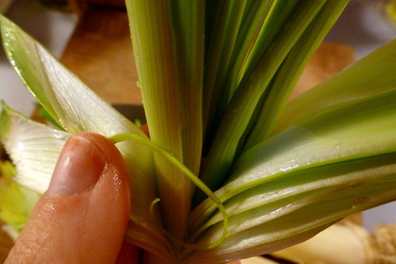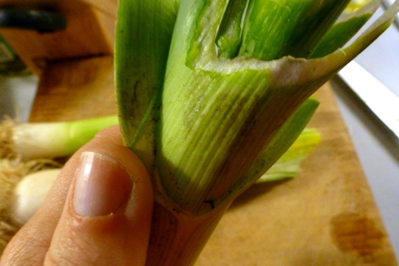 Take your time and pull the layers back under running water. I like to slice down the length of the stalk, making a cross-hatch pattern to let the water really get in there.
