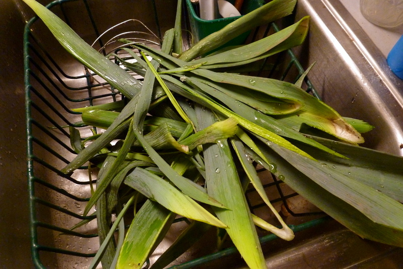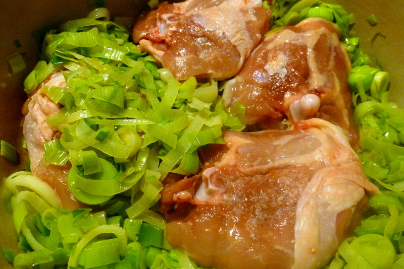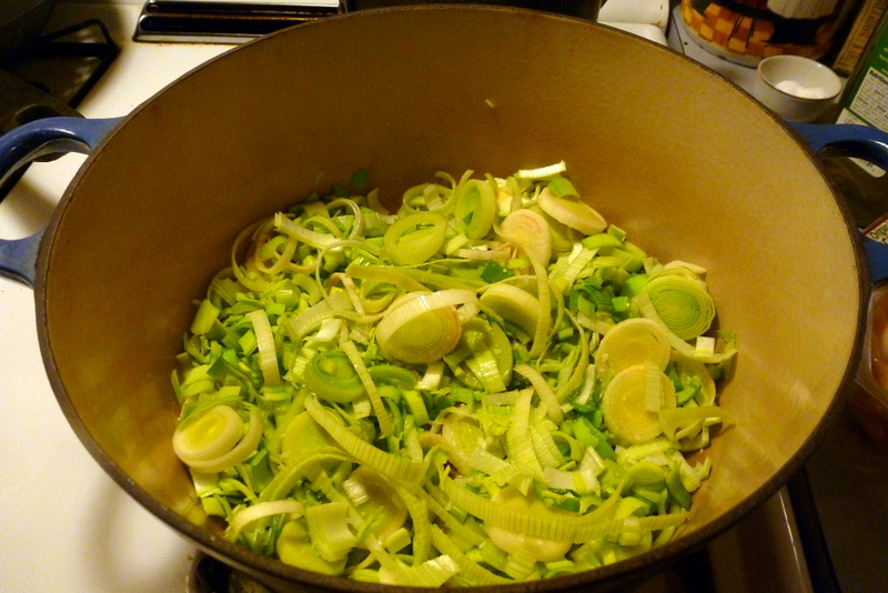I was excited to pull leeks from the metaphoric earth this week because I knew I was getting sick, and the first thing that came to mind was the soup I’m going to describe to you now. Yes, chicken soup for sickies isn’t especially ground breaking, but this one is special and has become one of our favorite comfort foods on just such occasions.