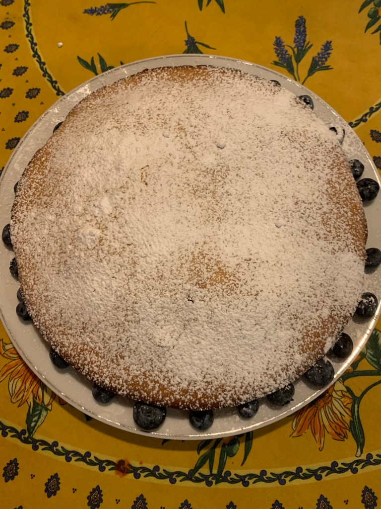 The cake couldn’t have been simpler and it’s funny to me that we made a cake at all, considering Rudy doesn’t even really like cake. Usually. This one we both agreed would be really lovely for breakfast with coffee. Not too sweet, despite the very sweet condensed milk (there is no other sugar in this recipe) with a dense crumb and elevated with a little powdered sugar and fresh blueberries.